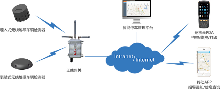 自主研發(fā)的智能無(wú)線地磁停車(chē)系統(tǒng)采用廣域無(wú)線物聯(lián)網(wǎng)系統(tǒng),可實(shí)現(xiàn)傳輸距離1公里,一個(gè)基站可覆蓋1000個(gè)車(chē)位,改變了傳統(tǒng)的停車(chē)管理方式,終端采用電池充電,無(wú)需挖槽和布線,較大程度上較低了產(chǎn)品成本和施工成本。