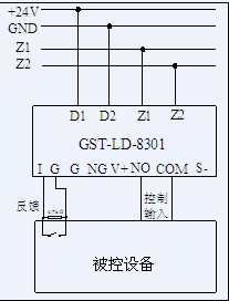 GST-LD-8301型輸入/輸出模塊與現(xiàn)場(chǎng)設(shè)備的接線: