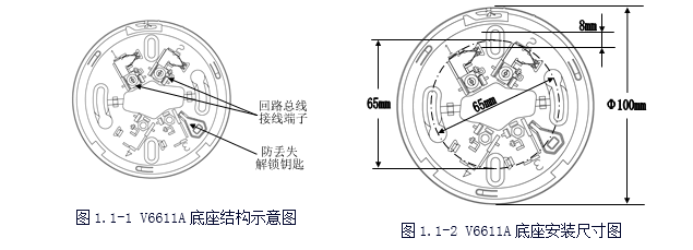 V6611A探測器底座結(jié)構(gòu)簡單、安裝方便、結(jié)構(gòu)件配合牢固;具有探測器防丟失結(jié)構(gòu)設計,每只底座均備有專用的解鎖鑰匙。底座備有長圓形安裝定位孔,可適應于86H50型標準預埋盒及其它型號的預埋盒。