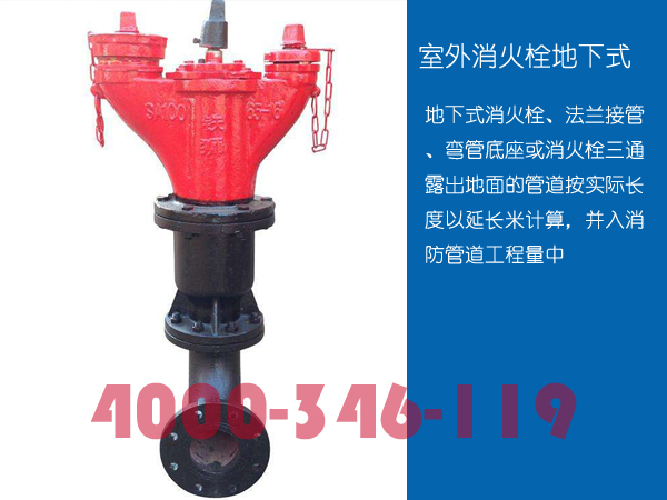 地下式:地下式消火栓、法蘭接管、彎管底座或消火栓三通 露出地面的管道按實(shí)際長(zhǎng)度以延長(zhǎng)米計(jì)算,并入消防管道工程量中! 管道安裝按設(shè)計(jì)管道中心長(zhǎng)度,以“m”為計(jì)量單位,不扣除閥門(mén)、管件及各種組件所占長(zhǎng)度