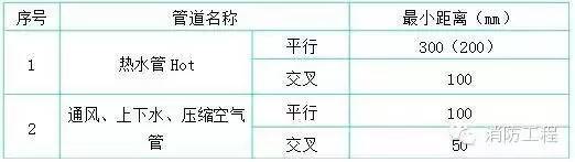 4.暗配電線管路與其它管道小距離,如下表所示: